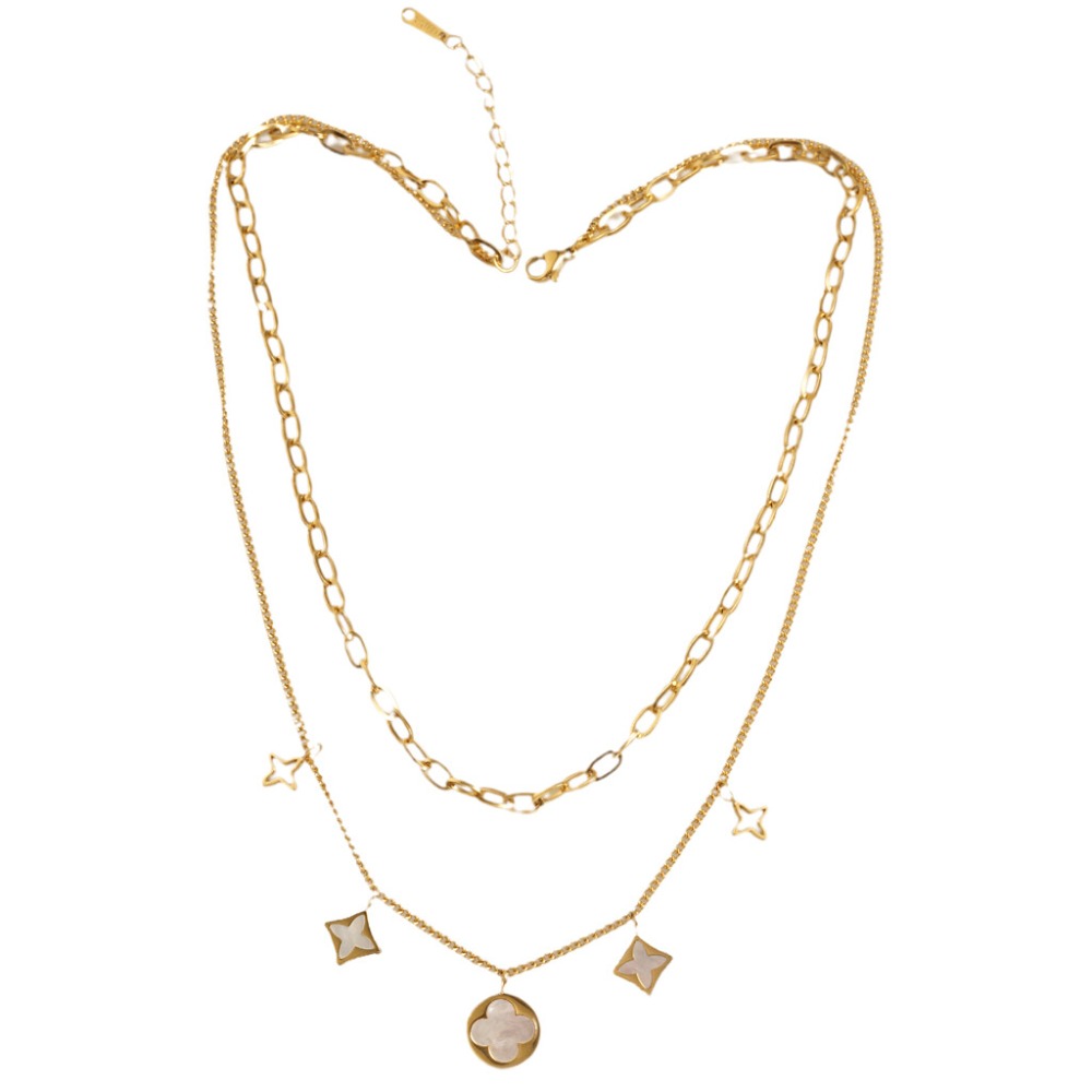 Gold 2 Chain Mop Charm Necklace