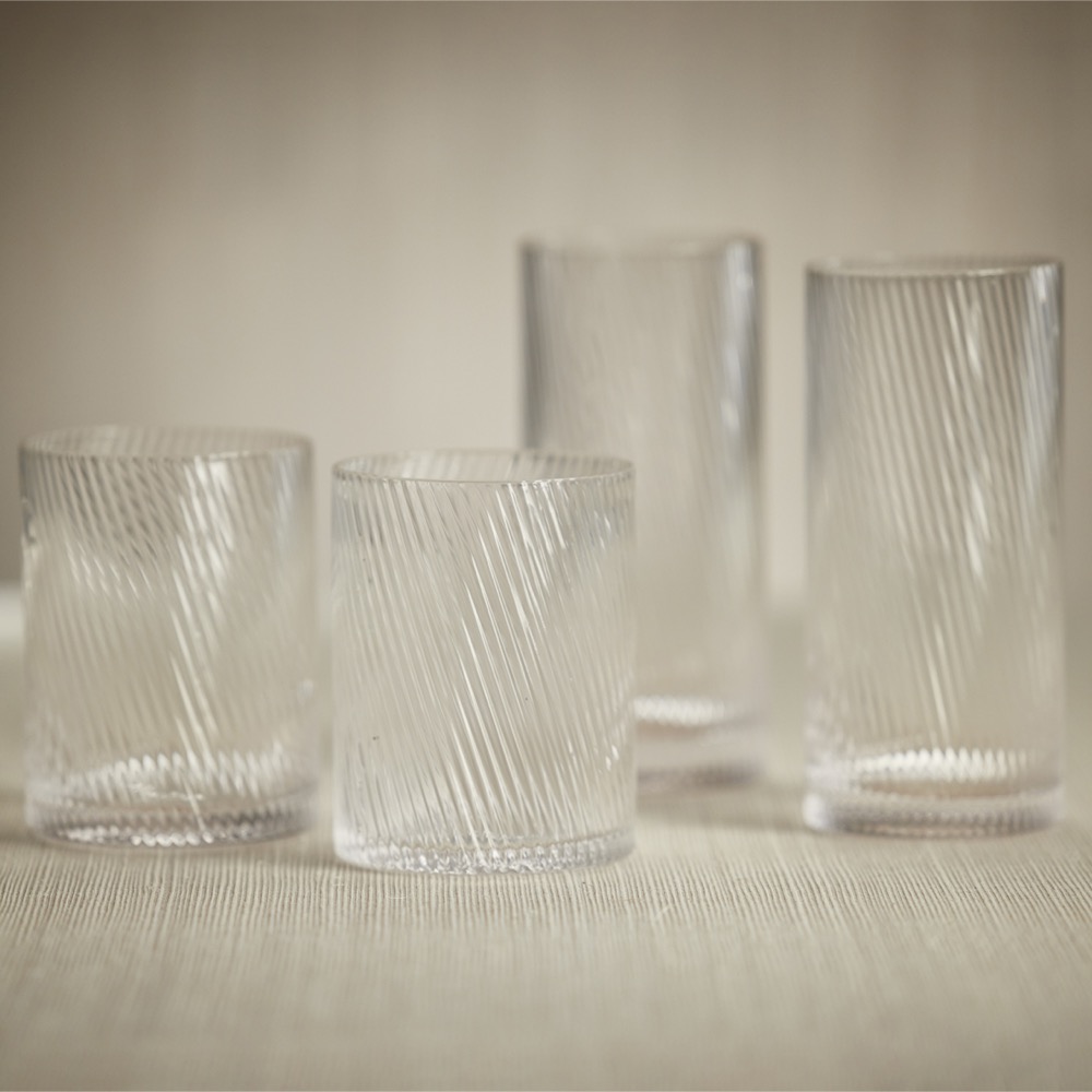 RUFFLE GLASS BEDSIDE CARAFE AND T, SET/2